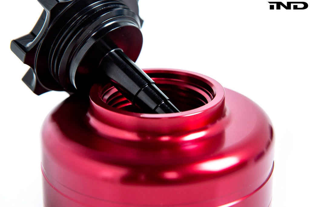 Rather than completely reinventing the power steering reservoir's form factor, we give it exactly what it needs: room to expand. By threading our new reservoir onto the factory unit, you effectively add over 35mm of fluid expansion space while also dressing up your engine bay. The additional headroom not only safeguards against messy engine compartments as intended, but also guarantees a consistent steering feel. Since there is enough area for the fluid to travel, there is no cavitation between air and fluid, resulting in driving confidence in the most extreme conditions.