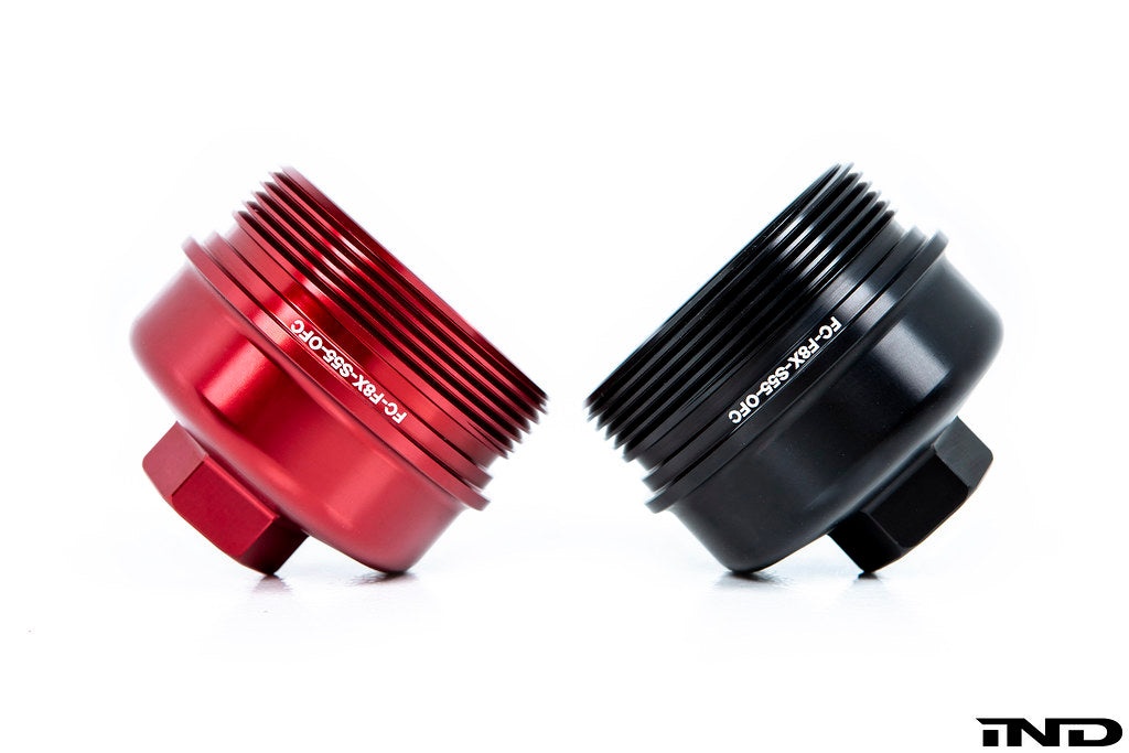 Function and Form. The factory F8X oil filter housing cap is made of plastic which, by nature of the material, dissipates heat poorly and is prone to failure over repeated heat cycles. By contrast to the OEM unit, our cap is constructed from 6061-T6 aircraft-grade aluminum which promises two functional benefits: greater longevity and cooler running throughout its life cycle.