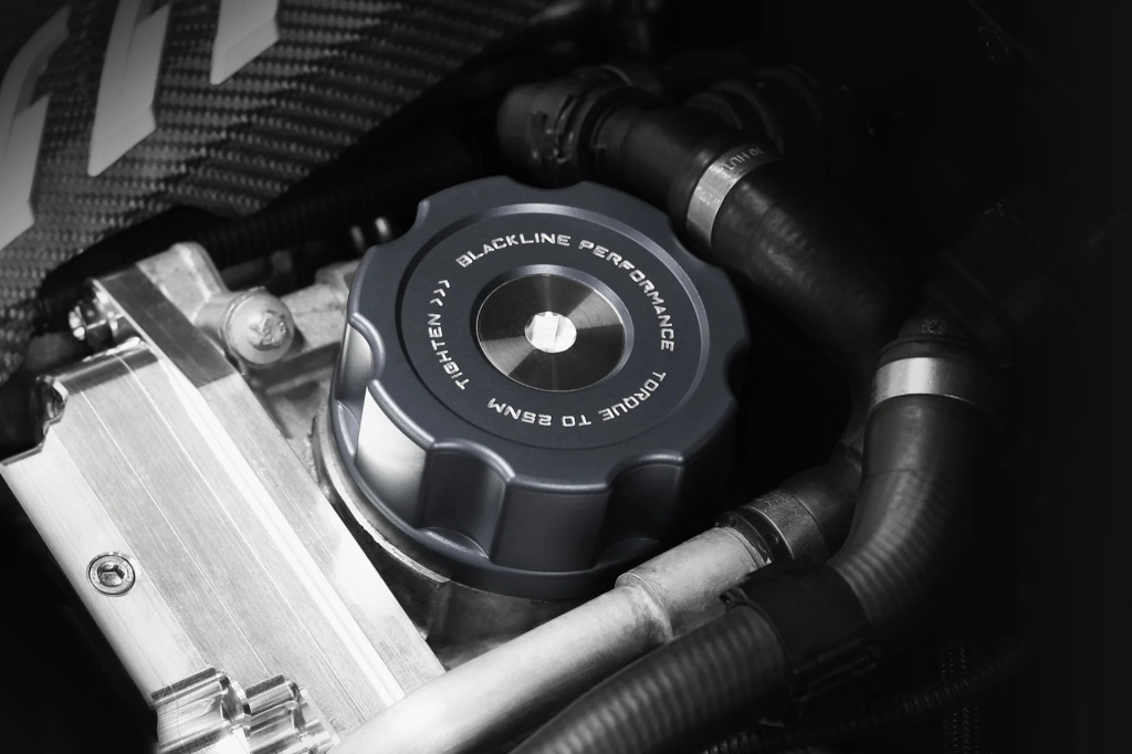 Replace the factory oil filter housing cap made of plastic which is prone to failure over time. Bring form, function and design to your engine with our highly anticipated 2022 product release. Introducing the BLACKLINE Performance BMW F Series Billet Oil Filter Housing Cap designed to increase the functioning longevity and improve aesthetics over the factory plastic part while offering superior built in maintenance features.