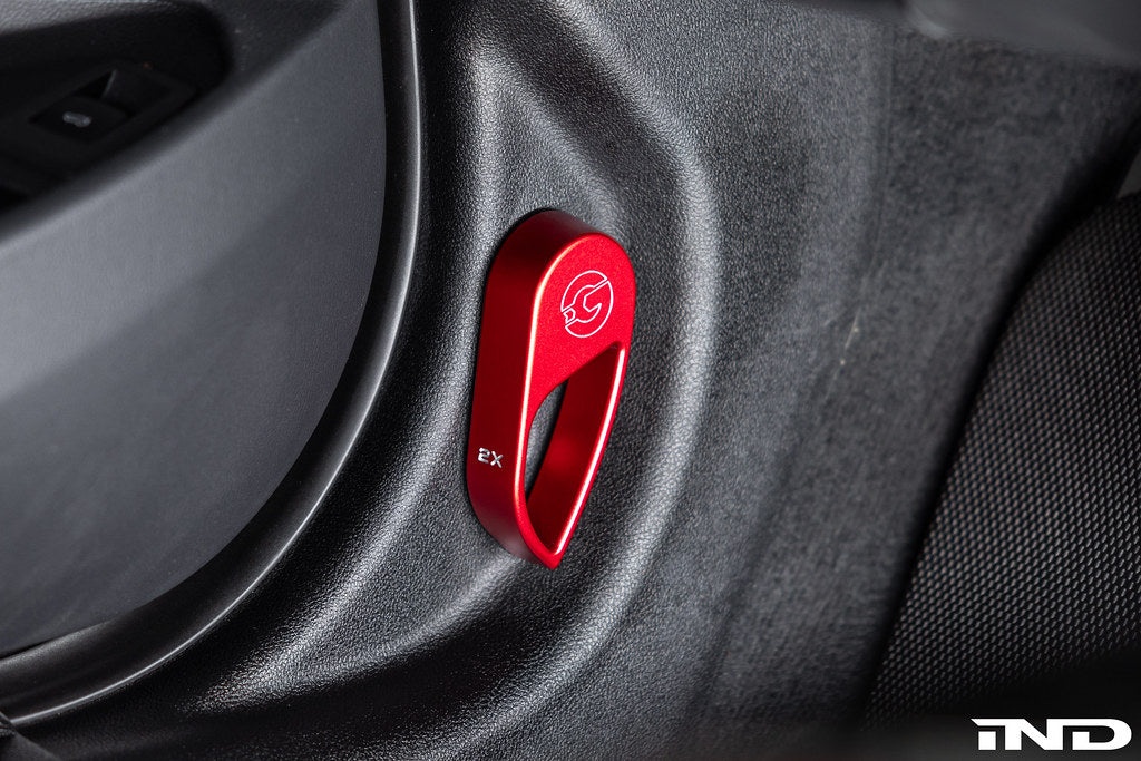 Replace the flimsy plastic factory hood latch with our ultra premium upgraded BLACKLINE Performance Hood Latch Handle. Each unit is CNC formed from T6 Aluminum and anodized with our specialized Edition Red colorway. All logos and decorations are finalized through our precision 3D milling process, machined into each handle for the ultimate premium finish. The BLACKLINE Performance Billet Hood Latch Handle will fit most BMW G8X Series model cars and more (please see application fitment guide below). Each kit comes with a Billet Hood Latch Handle, replacement upgraded fastening hardware, and an Installation Instruction Card. Installation is can be completed easily at home in minutes. Give your vehicle the upgrade it deserves.