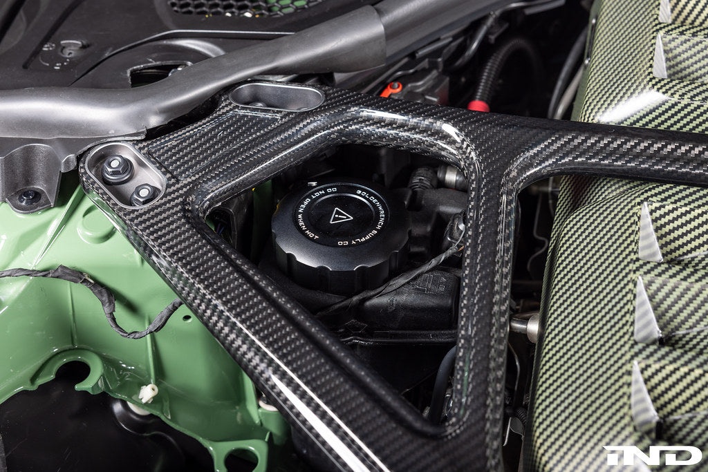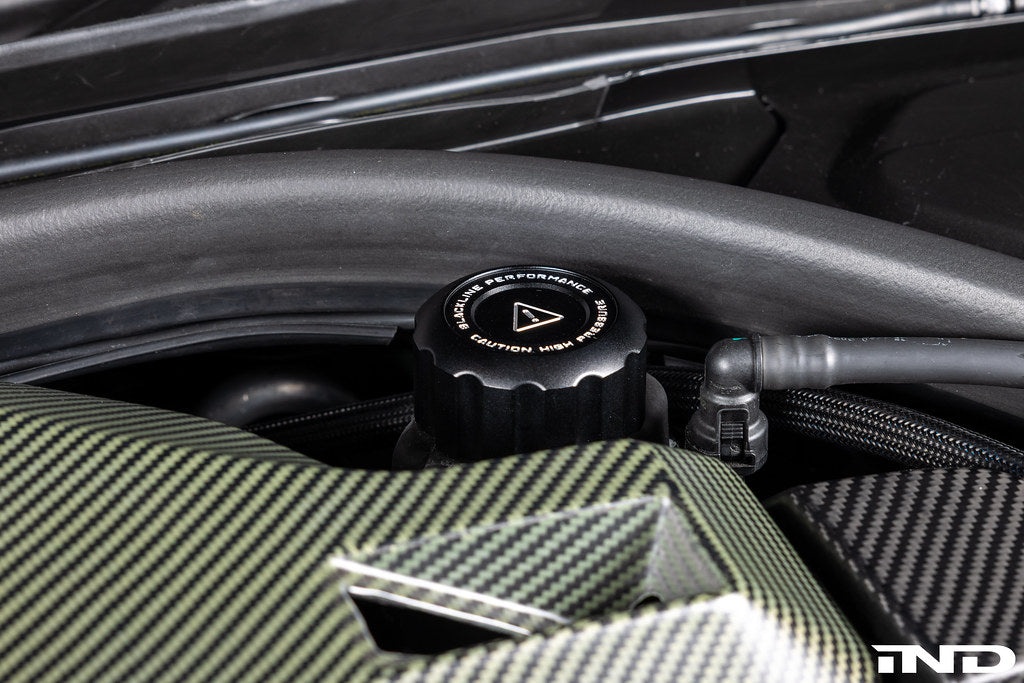 Each cap cover is crafted from durable T6 aluminum and finished in a striking Frozen Black anodized coating for added sophistication and long-lasting durability. The set is specifically designed for BMW M models with the S58 engine, ensuring a precise and secure fit over the factory caps.