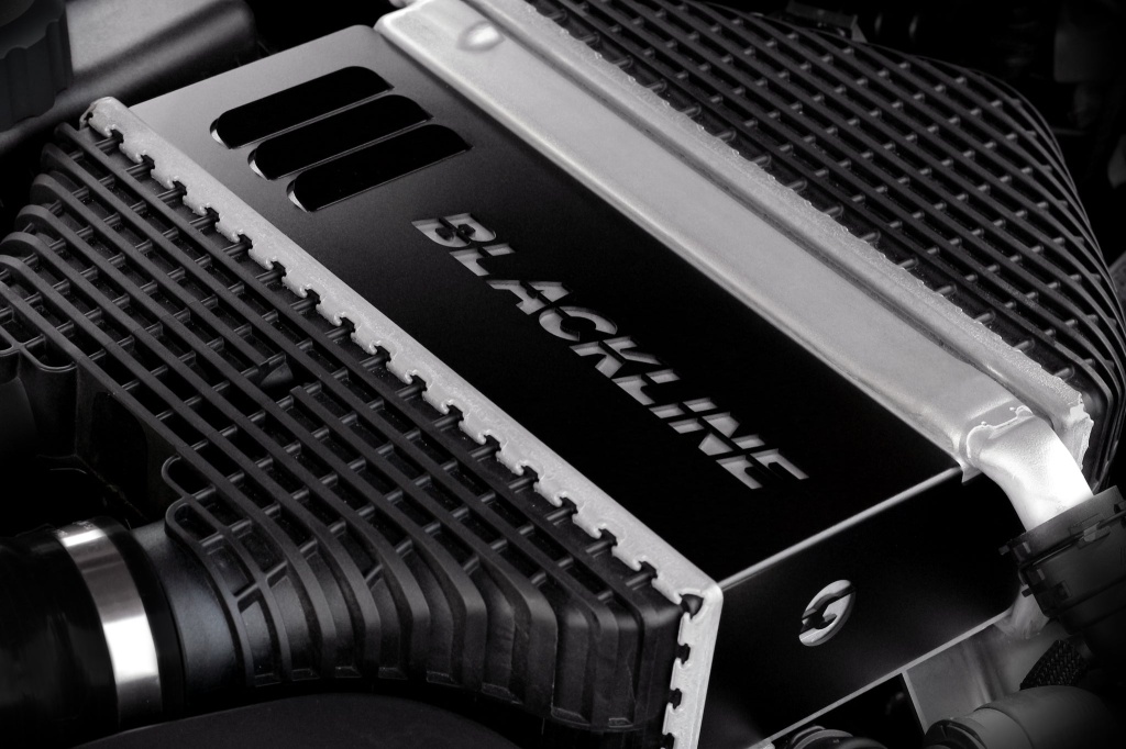 Introducing the BLACKLINE Performance Charge Cooler Cover. An elegant solution to cleaning up the factory cooler unit in your engine bay. Constructed from 1.5mm thick T5 aluminum, featuring our Tri-Fin design and laser cut BLACKLINE logo and classic G insignia giving the factory unit an improved visual appearance. Each cover is finished in a sleek satin black anodized finish.
