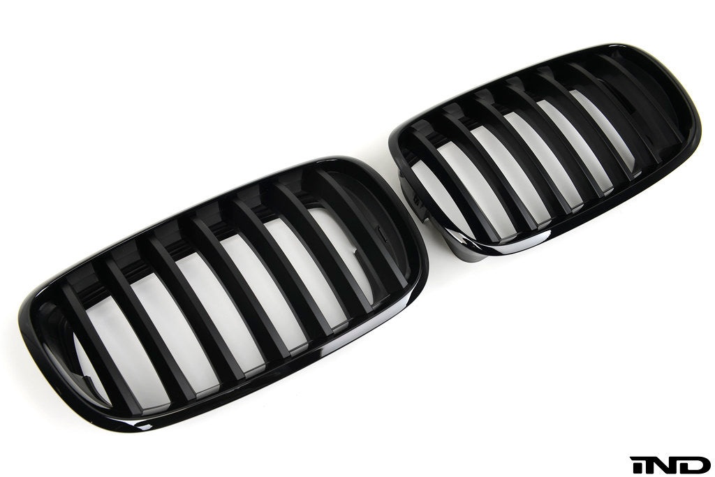 Despite enthusiasts desire for a non-chrome front grille, all BMW M cars still come with a chrome front grille set. As a means of helping enthusiasts create a more aggressive and streamline front end appearance, we now offer a painted front grille set for the E70 X5. All