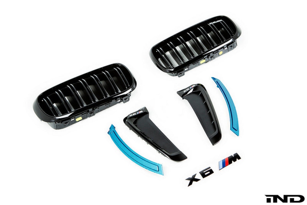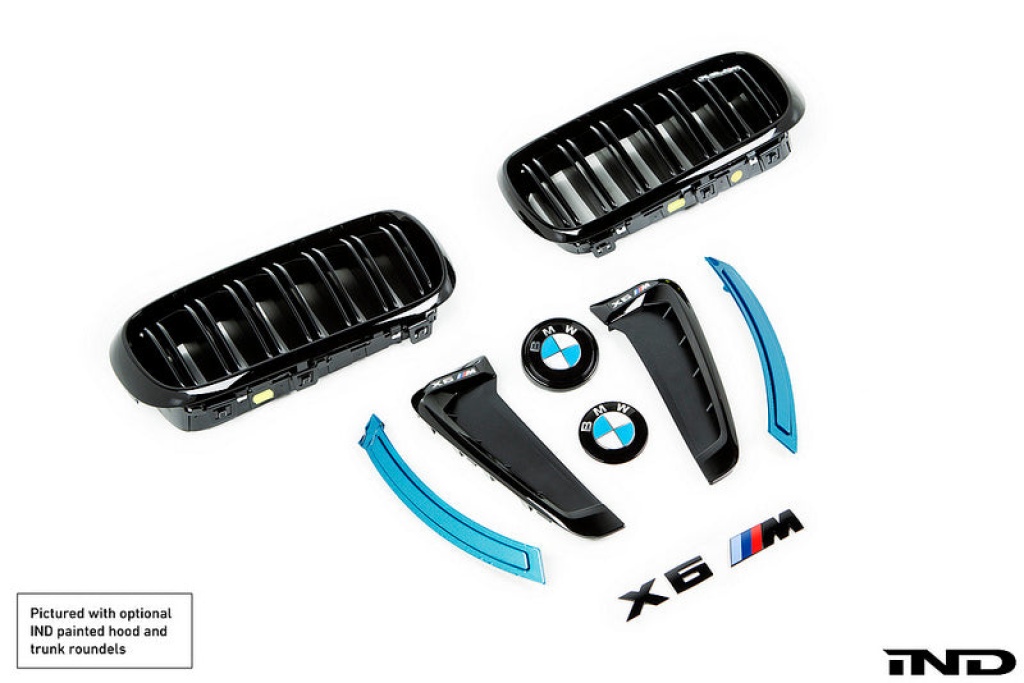 The IND F86 X6M cosmetic package is an all in one solution for those looking to eliminate the unsightly chrome and amber factory accents. All parts utilized in the kit are 100% OEM to ensure proper fitment. The paint work is performed in-house at our paint shop and all parts come with a paint quality guarantee.