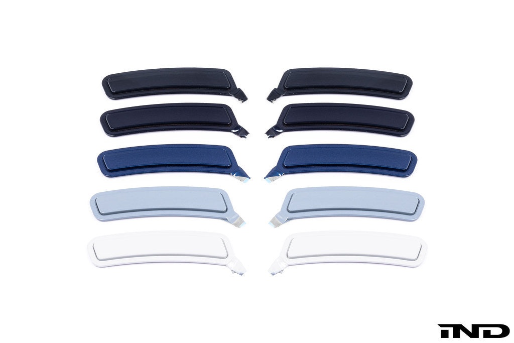 Transform the front-end appearance of your BMW G60 5 Series with the IND Painted Front Reflector Set. This set replaces the factory orange reflectors with sleek, color-matched alternatives that blend seamlessly into the bumper, enhancing your 5 Series' refined look. Each reflector is custom-painted in-house using genuine BMW paint codes, ensuring a flawless match to your vehicle's exterior finish.