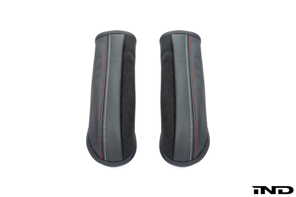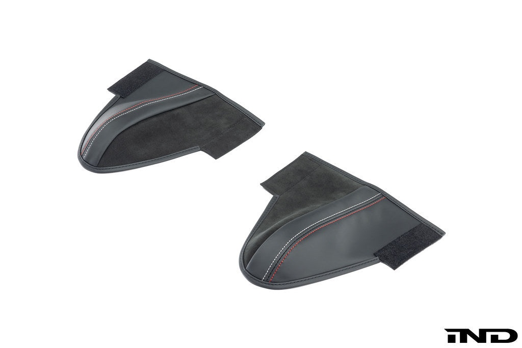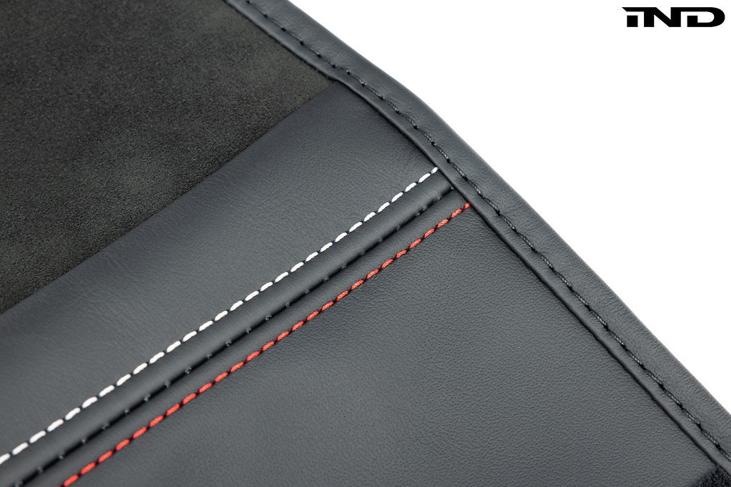 Unfortunately, due to the very aggressive nature of the seat, you will experience heavily worn bolsters from getting in and out of the car over time. Luckily IND has come through with the ultimate high-end, matched seat bolster protector set that blends so perfectly with the seat, it looks like it came with them. Each bolster protector is assembled using OEM BMW materials and stitched to perfectly match the contour and stitching of the CSL full carbon bucket hip bolster giving an incredibly seamless look, while being installed easily in seconds.