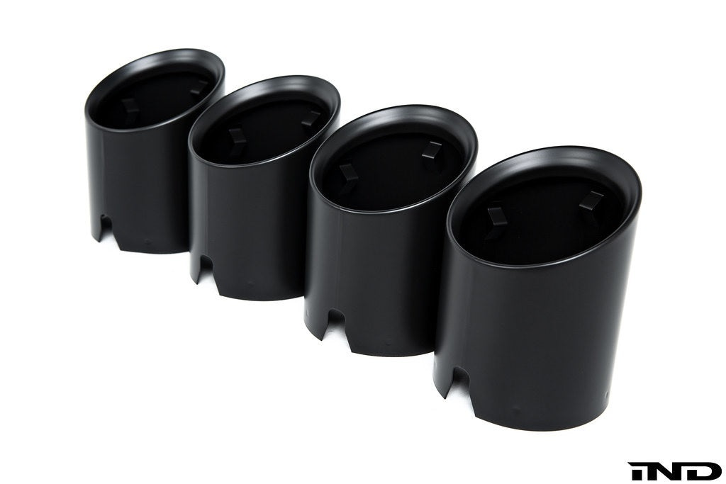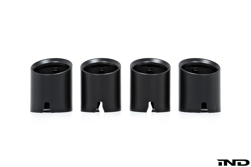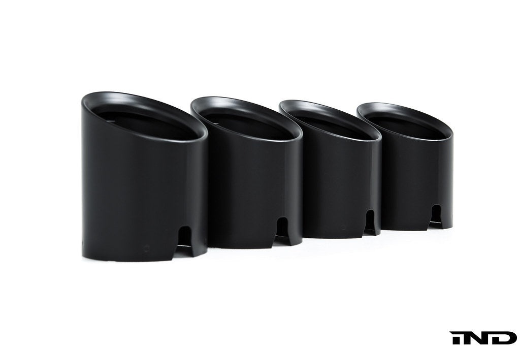 Utilizing original BMW parts, all tips are powder coated in-house and available in matte black. This provides a clean and menacing appearance for the vehicle, especially with the new G8X platform's massive 90mm exhaust tips.