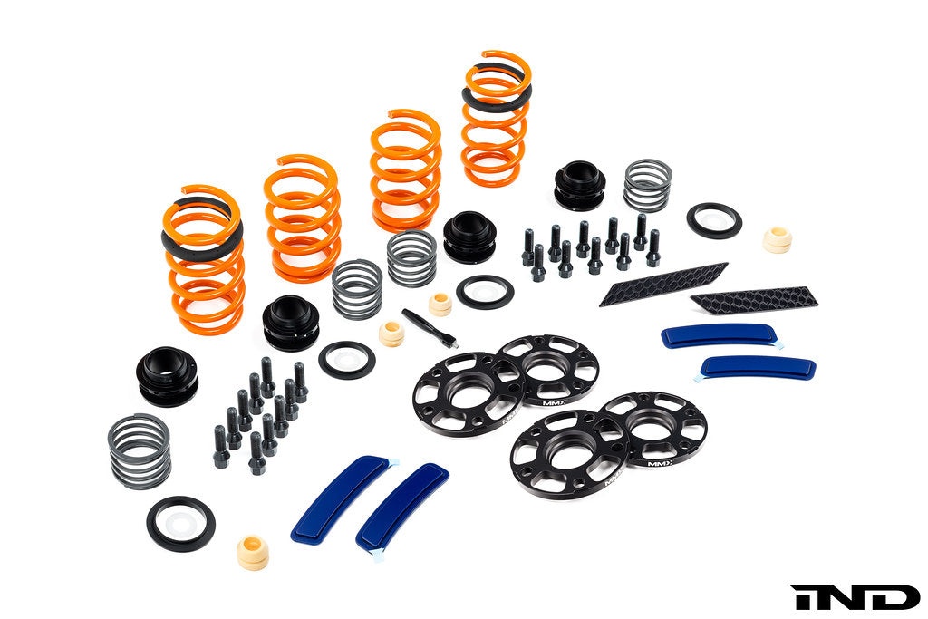 The cumulative effect of these upgrades is substantial. The G99 M5 Touring with these modifications is instantly transformed, both in stance and handling, to better reflect the spirit of BMW’s newest M car. IND’s renowned painted front and G99-specific rear arch reflector deletes lead the charge, while the Acexxon rear bumper reflector inserts clean up the rear for a sleek, refined look. AST’s precision-engineered adjusters make it easy to dial in your perfect ride height, and paired with MMX Performance spacers, they give the car a confident, aggressive posture that hints at its capability.