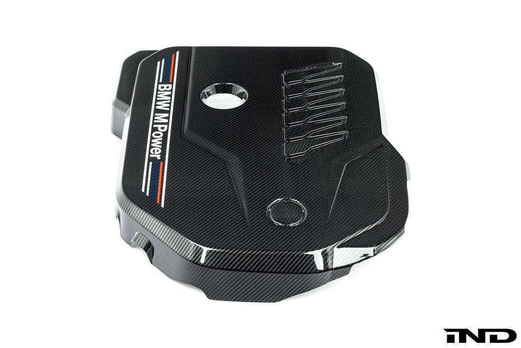 Constructed of carbon fiber pre-preg, this engine cover replacement adds a bit of flare to your engine bay and matches other BMW M Performance 2x2 carbon components. Indiv's carbon engine cover replaces the standard black plastic cover and includes an M Power stripe decal.