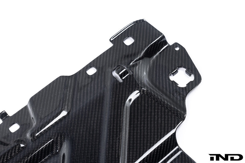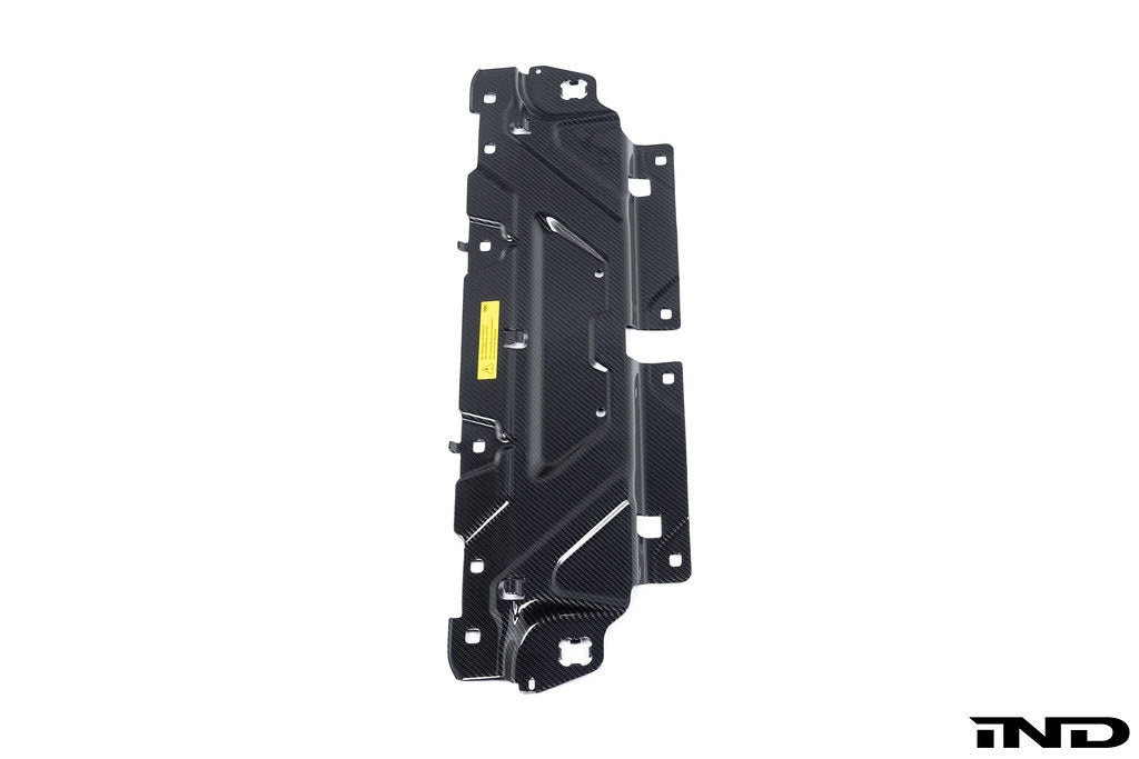 Constructed of carbon fiber pre-preg, this cooling shroud cover replacement adds a bit of flare to your engine bay and matches other BMW M Performance 2x2 carbon components found in the G8X models as well as Indiv's own carbon engine and ECU covers. This cooling shroud cover replaces the heavier original metal cooling plate, but is thicker carbon construction compared to alternatives on the market and feels more sturdy.