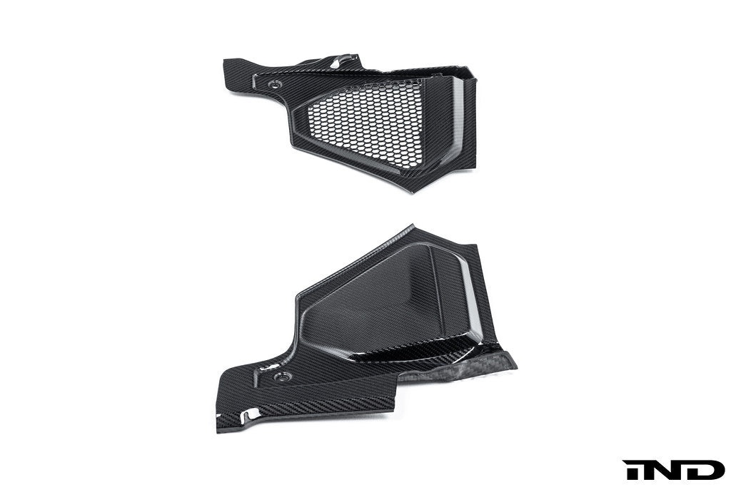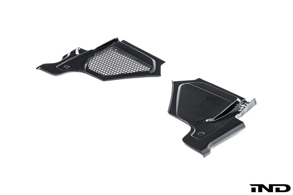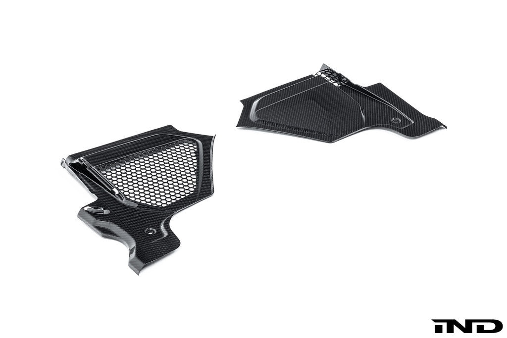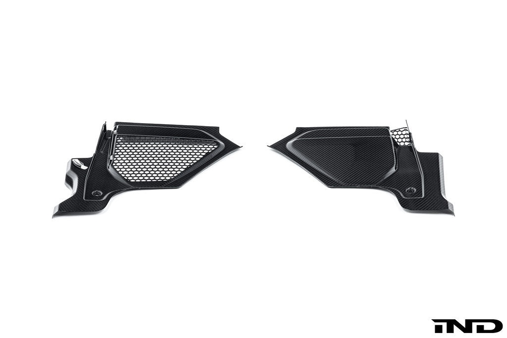 Constructed of carbon fiber pre-preg, these engine bay covers add even more flare to your engine bay and match other BMW M Performance 2x2 carbon components found in the G8X models as well as Indiv's own cooling shroud and carbon engine and ECU covers.