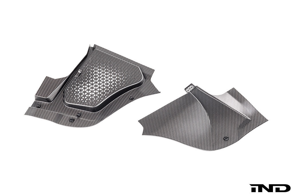Crafted from 100% pre-preg (dry) carbon fiber and autoclave-cured for strength, low weight, and a uniform surface, this kit is engineered for precise fitment with integrated mounting tabs. Available in 2×2 twill gloss or 2×2 twill matte clear, it complements the M5’s factory design with a clean, premium presentation.
