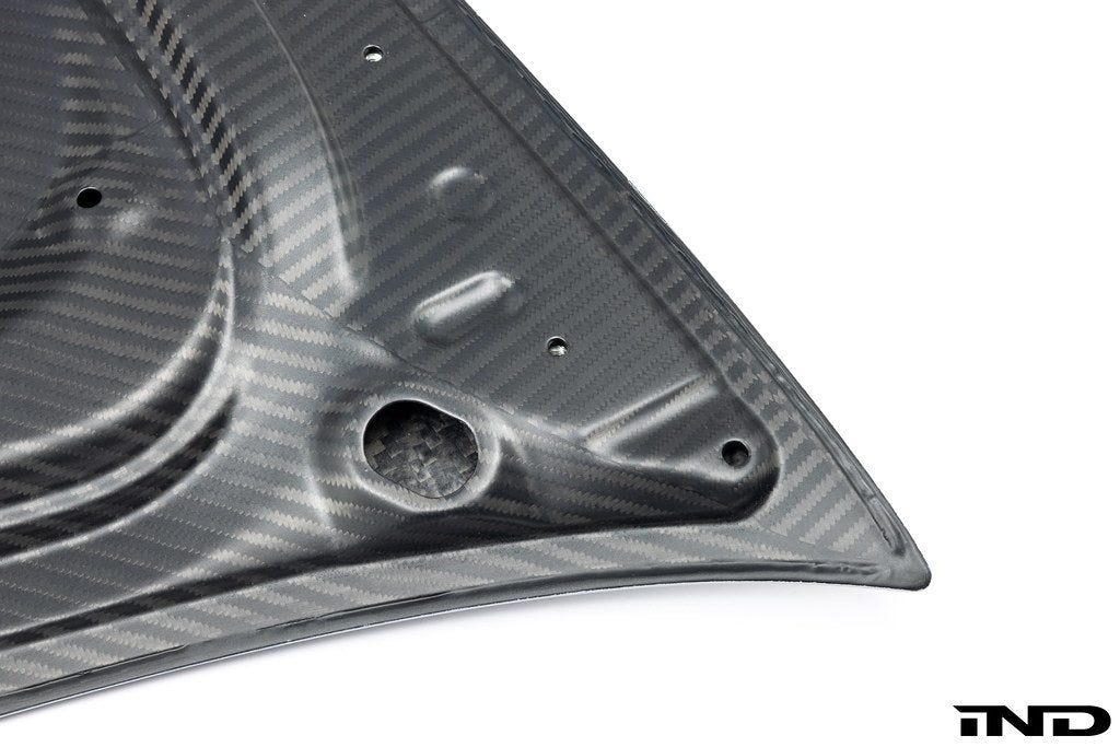 It is a piece made of 100% prepreg carbon fiber in an autoclave. The exterior finish comes in a primed finish ready to paint or optionally in 2×2 UV varnished exposed carbon. The interior finish is a matte 4x4 twill weave.