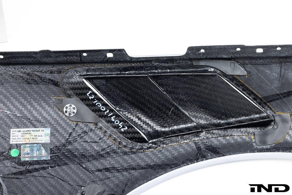 The Karbonius G80 Vented Fender offers an impressive aesthetic appearance. The exposed carbon fiber finish provides a touch of elegance and sportiness, enhancing the vehicle’s visual appearance.