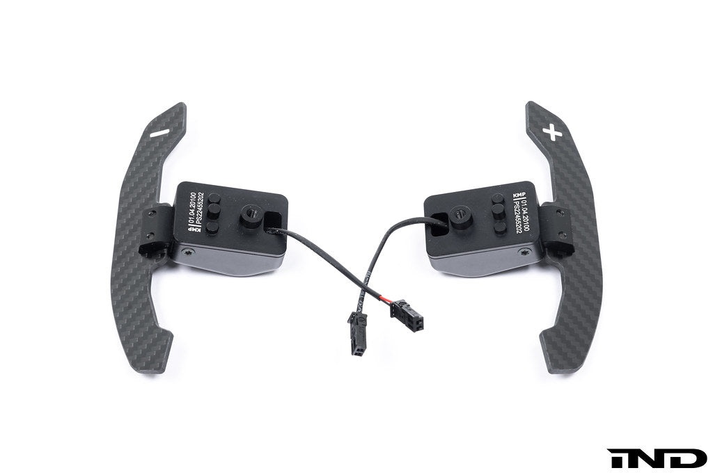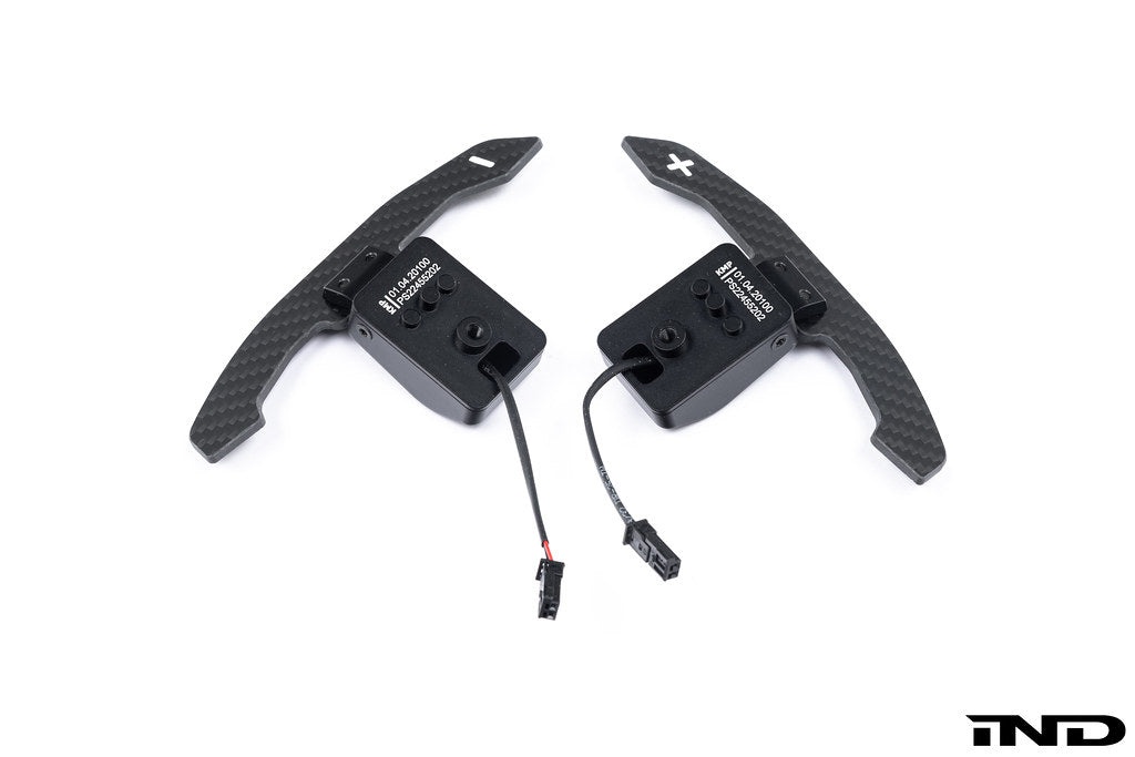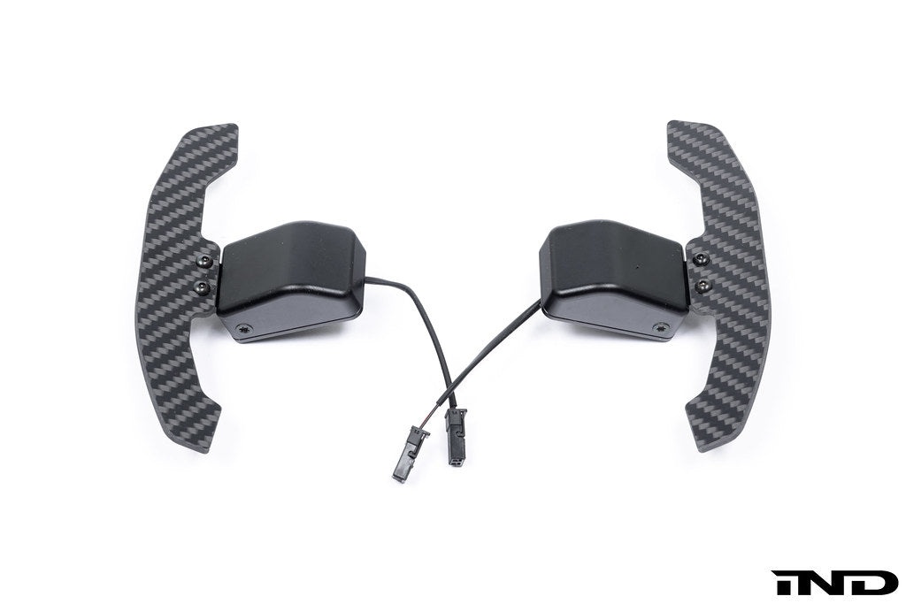 The package will include two styles of carbon paddles. One variation resembles an OEM design, while the other is inspired by the BMW G80 paddles.