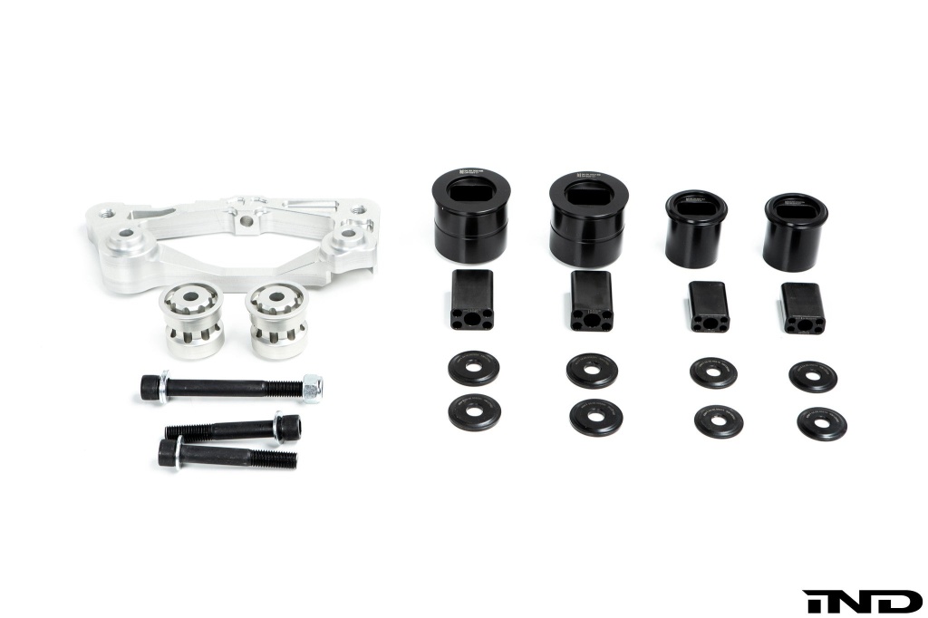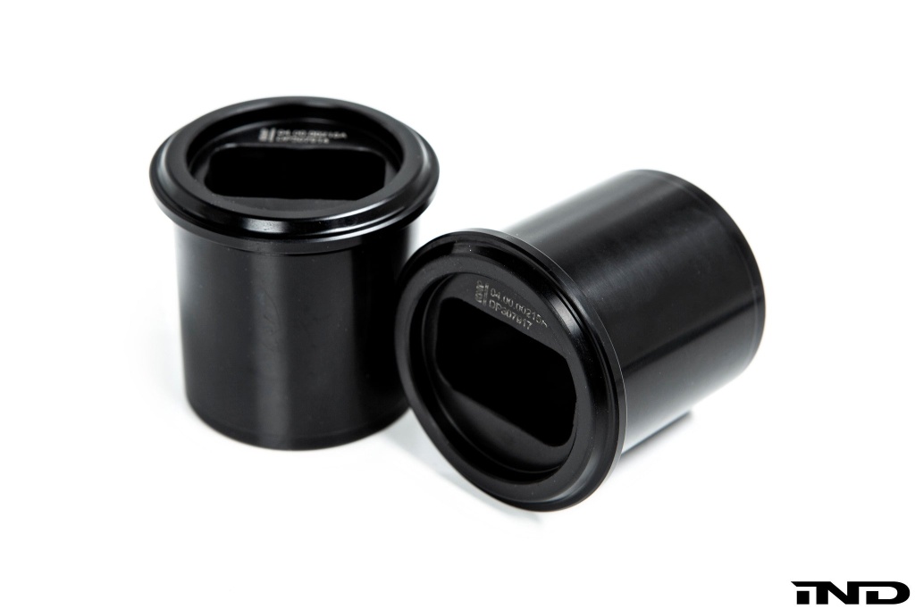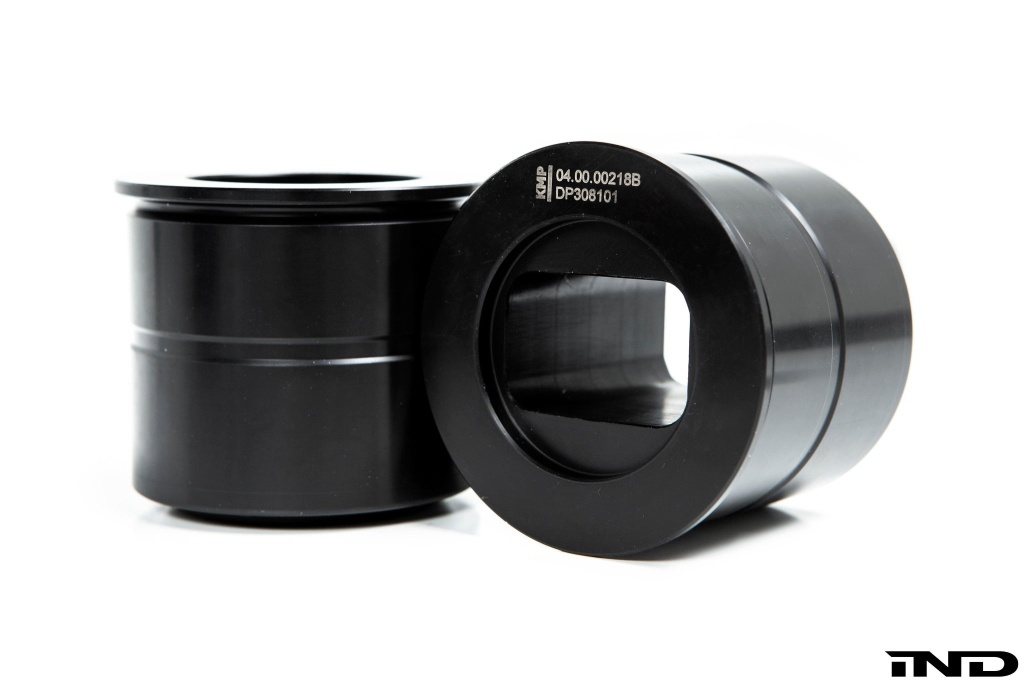 KMP's BMW differential mounting sets are designed to keep one degree of freedom with sliding bushings. You will have all the benefits from a rigid mount, but avoid the high forces which normally occurs with a 100% rigid mount. The polymer bushings will reduce peak forces, but the steel inserts will allow you to mount the differential with appropriate bolt torques (no deformation of the material). These type of bushings can absorb slight chassis deformations (eg. when hitting curbs).