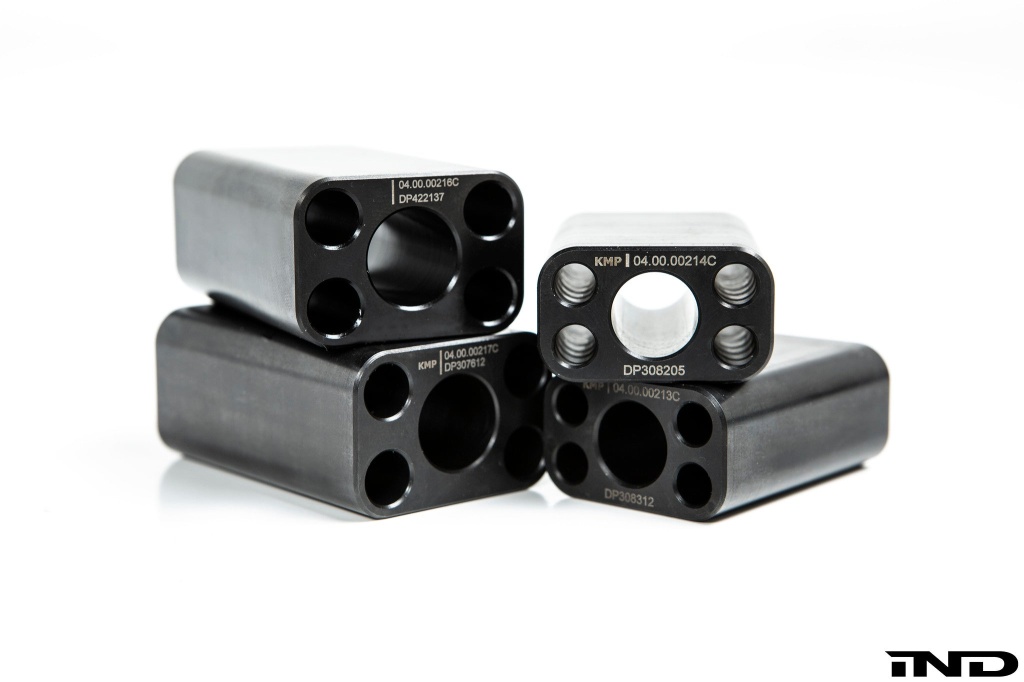 The factory M3 / M4 differential bracket, despite the F8X's power figures, only has one rear mounting point. Improve your differential mounting by creating 2 mounting points, combined with replacing the OEM rubber mounts. If higher strength is needed, especially for motorsport usage, a second mounting point can be used with KMP's BMW F8X differential bracket kit.