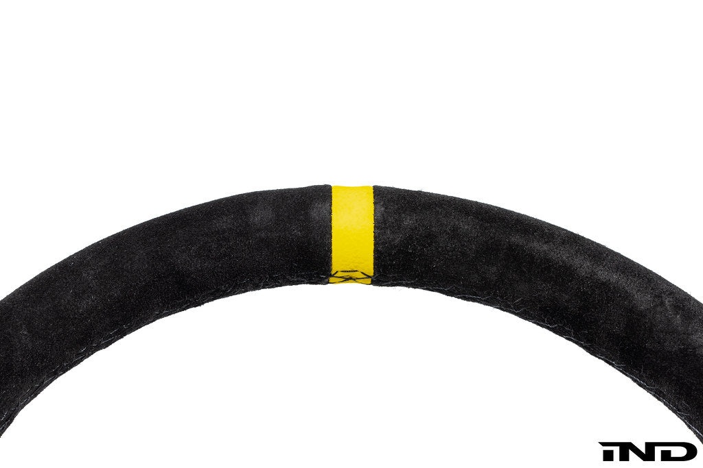 Alcantara wraps the smaller 330mm wheel in its entirety, ensuring optimal grip in all driving situations and quicker response over the stock unit. A yellow motorsport stripe adorns the wheel at 12 o'clock as a perfect finishing touch.