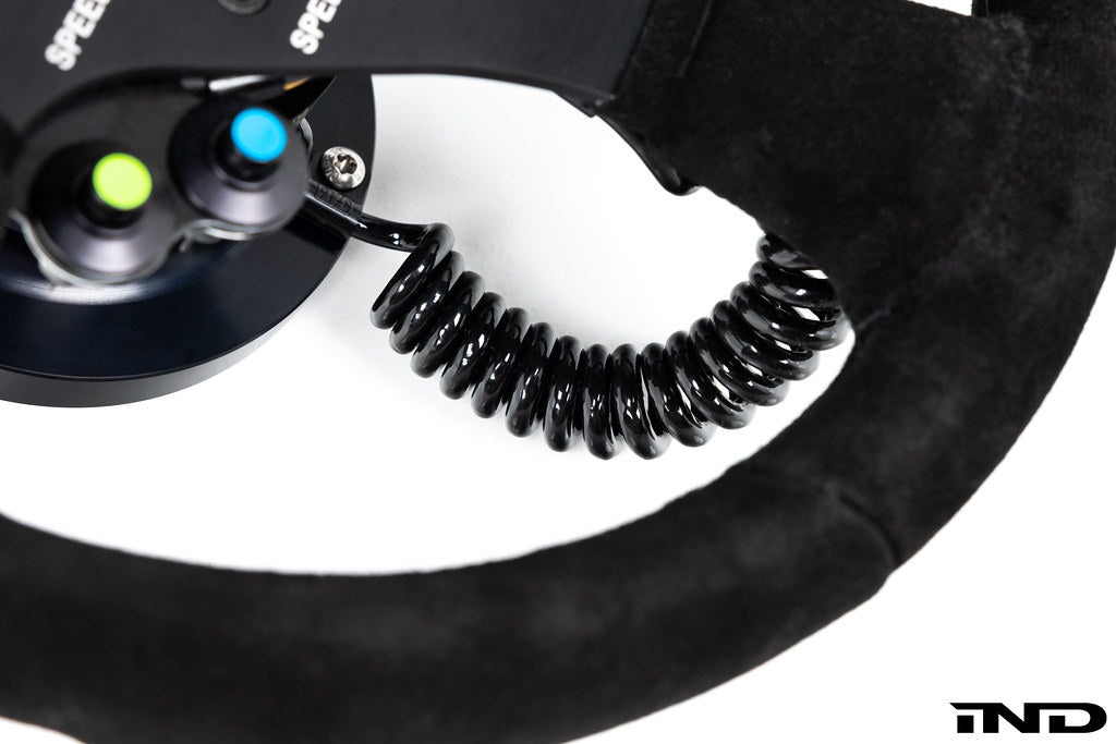 The plug and play BMW G8X M2 / M3 / M4 Racing Wheel has multiple button layouts available. This version is fully configured with six native button functions: M1, M2, Set*, Horn, Speed+, and Speed-. The complete assembly comes with a G8X hub, quick release adapter, OMP racing wheel and all necessary electronics. Because of their plug and play considerations, the KMP steering wheel is also devoid of any pesky error messages from the ECU, airbag, or controller. OEM equipment is easily fitted back into the car where necessary.