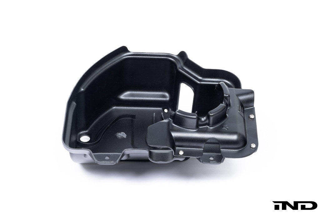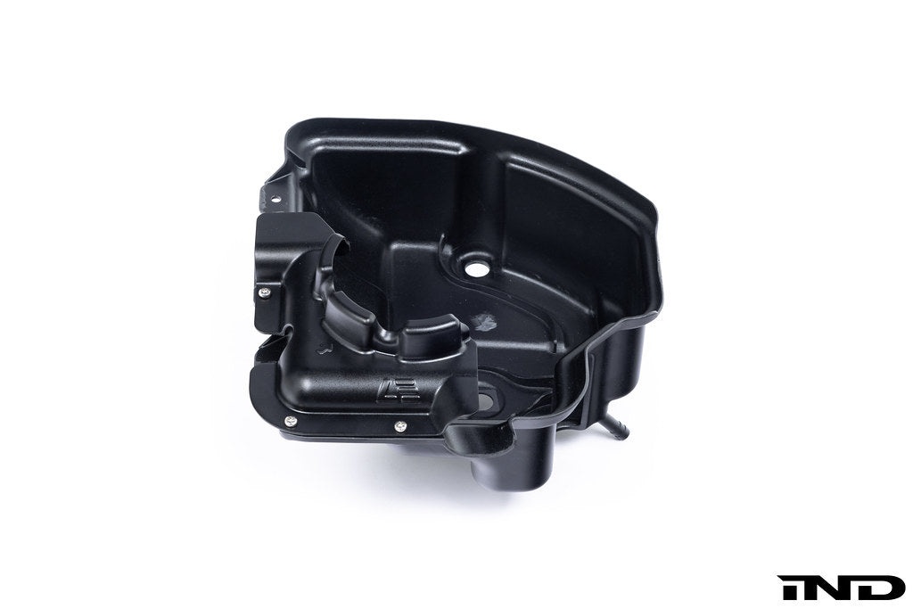 The coolant trap shield prevents antifreeze from inside the expansion tank from getting into the engine compartment and onto expensive electrical components during high fluid expansion stages. If fluid splashes from within the coolant expansion tank, it is caught by the shield and then drains through a special fitting at the bottom of the trap back.