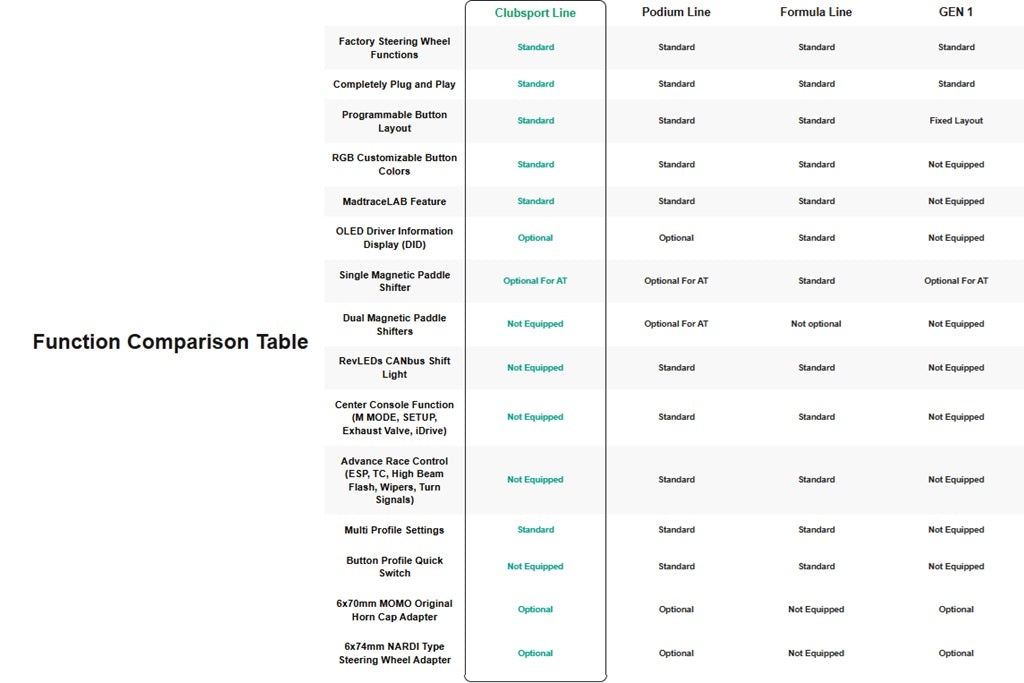 The CLUBSPORT Line system focuses on factory LIN bus functionality, giving drivers the ability to configure all OEM steering wheel functions across eight front‑facing buttons and dual joystick knobs. It delivers full factory functionality in a lightweight, track focused package, designed for drivers who want seamless integration with motorsport feel.