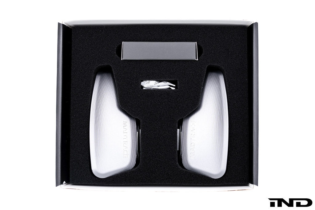 Moreover, the system emits a satisfying 'click' noise with every shift, enhancing the joy of your ride. Get ready to elevate your driving experience with the JQ Werks Madtrace® Clubsport Adjustable Magnetic Paddle Shifter System, engineered for performance and driving pleasure.