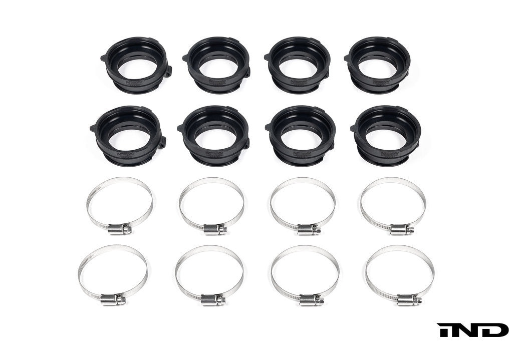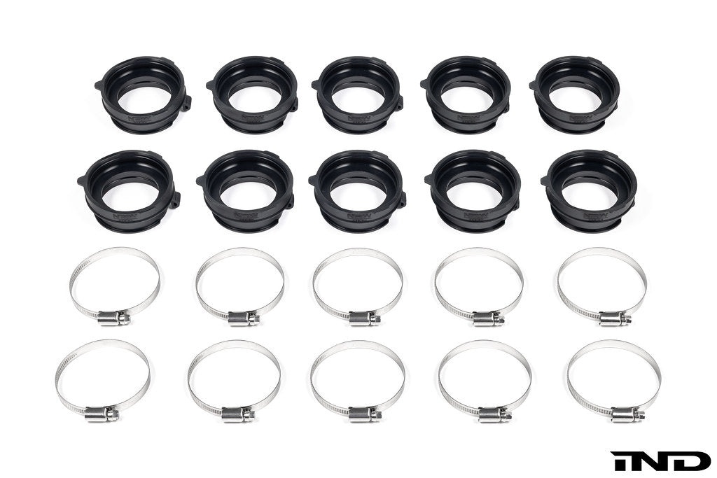 Over time, factory rubber couplers degrade—becoming brittle, deformed, and prone to leaking. These are treated by BMW as wear items, often needing replacement. NRW Design addresses this with a permanent solution: direct-fit silicone couplers engineered to outperform and outlast the OEM parts.