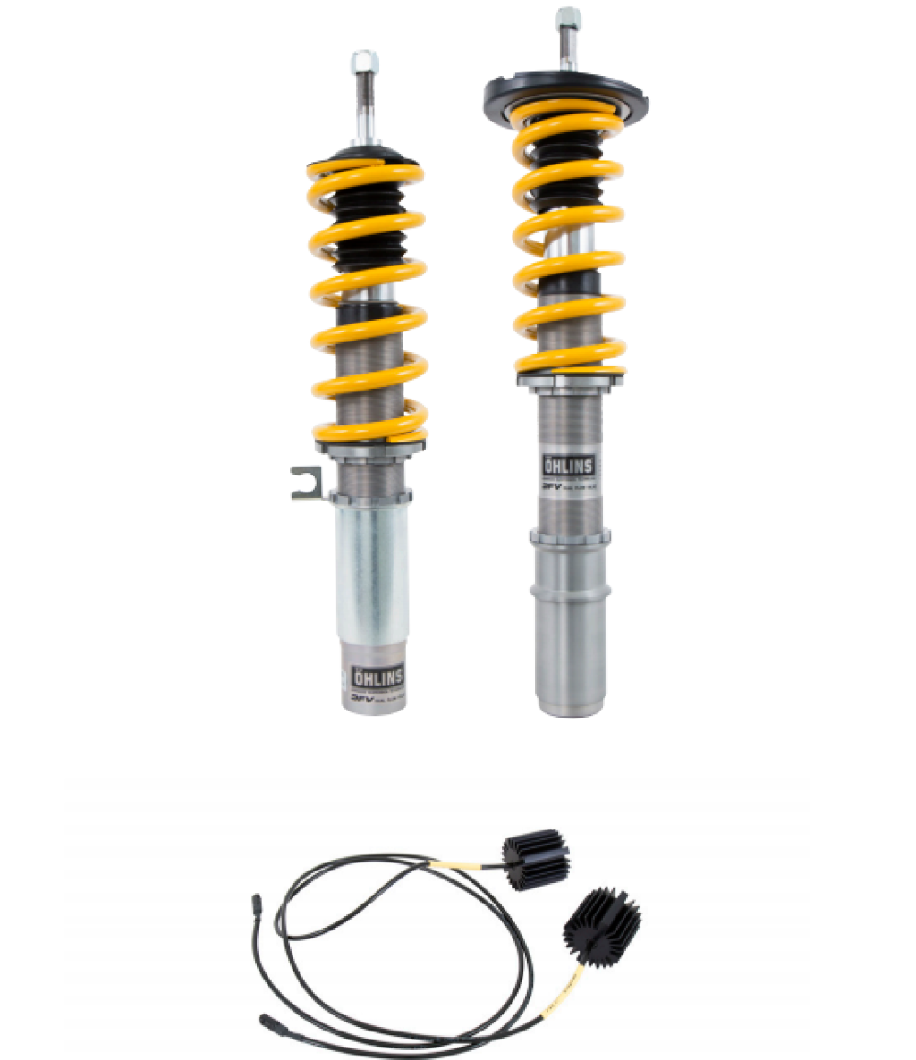 With Öhlins Road & Track coil overs you will experience a car with blistering response times / improved bump absorption and a massive amount of grip to increase the safety when driving your car on the limit. The car will be easier to balance on the edge of what the tires can handle before losing grip. You will be much quicker on track. The DFV suspension prevents you from losing the racing line when hitting bumps or curbs. The DFV components within react quickly and keeps you in control of the car and in contact with the track. When driving to and from the track / just set the dampers in road mode for a more relaxed and comfortable drive / still with more grip and quicker response time than ever before.