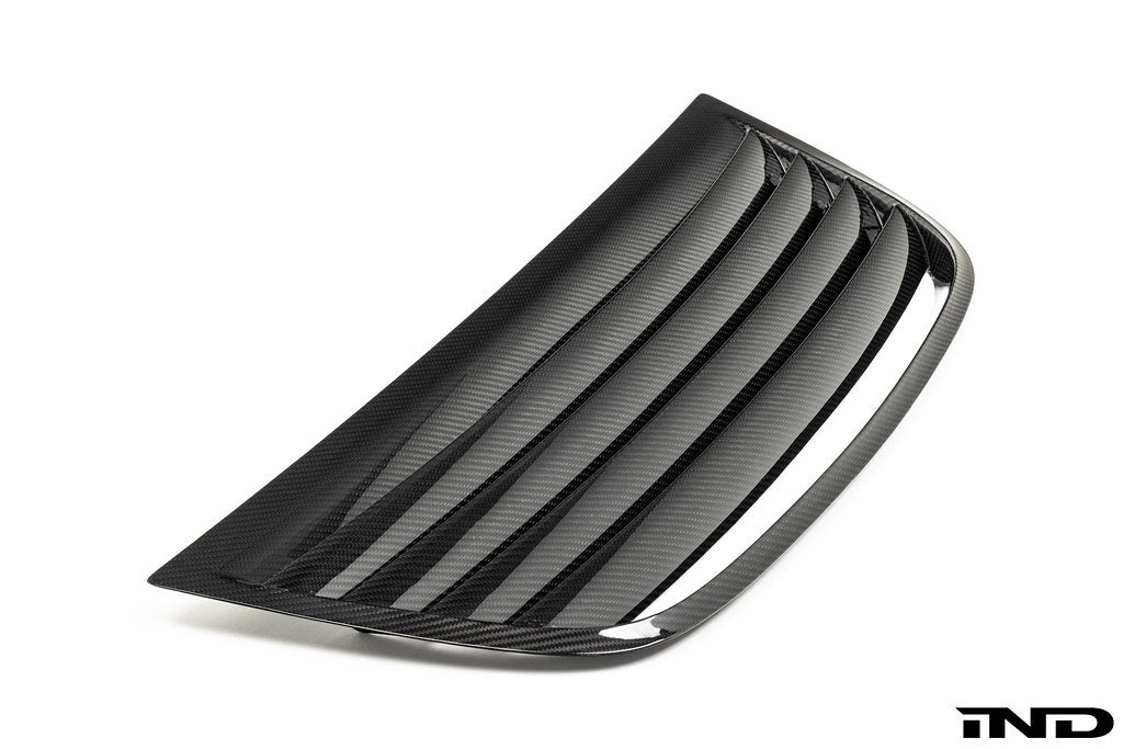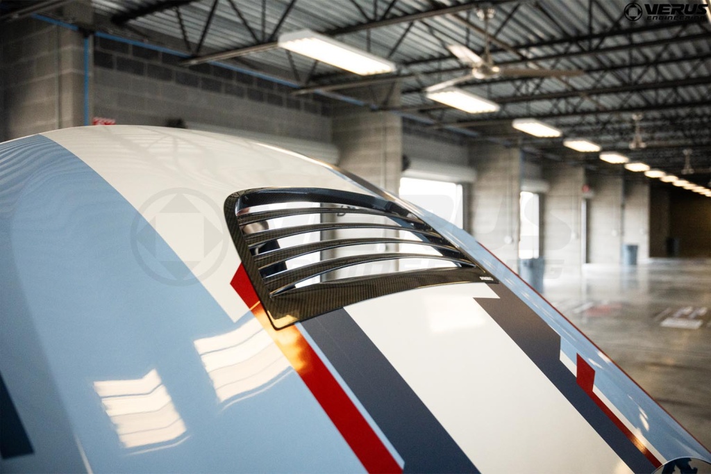 The Verus Engineering Carbon Hood Louver Kit for G87 BMW M2 helps reduce engine bay heat and pressure. The louver improves cooling stack efficiency, under hood component longevity, and adds a bump in the front end downforce by alleviating air pressure in the engine bay.