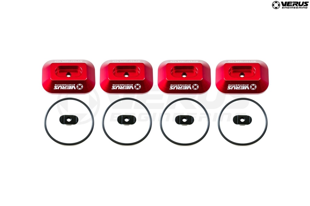 The jack pads install with ease in under 30 minutes and with no permanent modifications to the vehicle. The units feature an o-ring groove to keep water and debris out of the frame. The jack stand pads are anodized three popular colors, with red and blue standing out to ensure technicians, shops, and friends jack up the car from the correct locations. The units are machined, anodized, and laser engraved in the USA.