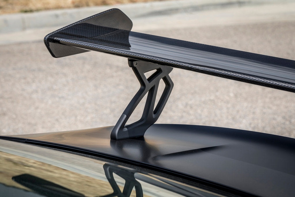 The uprights are a complete redesign of the OE M4 GTS wing upright. They are 2 ½ inches taller than the factory upright which allows the wing to sit in cleaner air which increases downforce over the rear of the vehicle. The uprights are manufactured using high grade aluminum and are powder coated anthracite grey. The uprights are a direct replacement utilizing the factory hardware and mounting points.