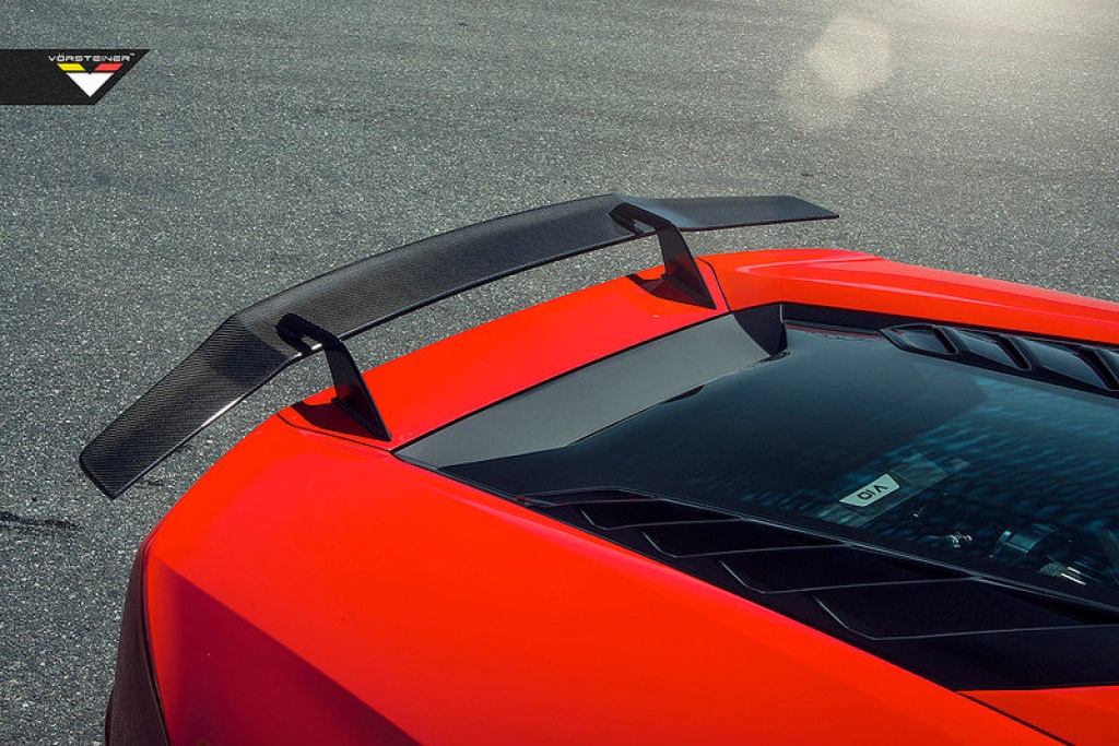 Vorsteiner active aero rear wing works harmoniously with the factory active aero dynamics in all modes. The wing uprights are available in T-6061 aluminum that mounts from the top of the wing blade for increased stability.
