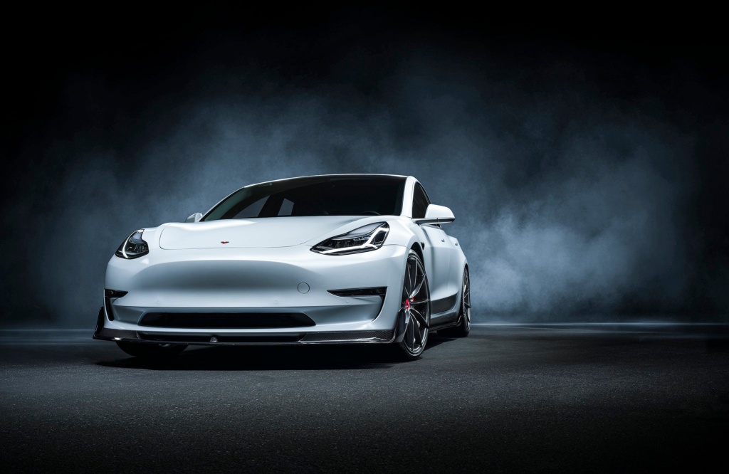 Volta Aero Front Carbon Fiber Spoiler for Tesla Model 3 from Vorsteiner.